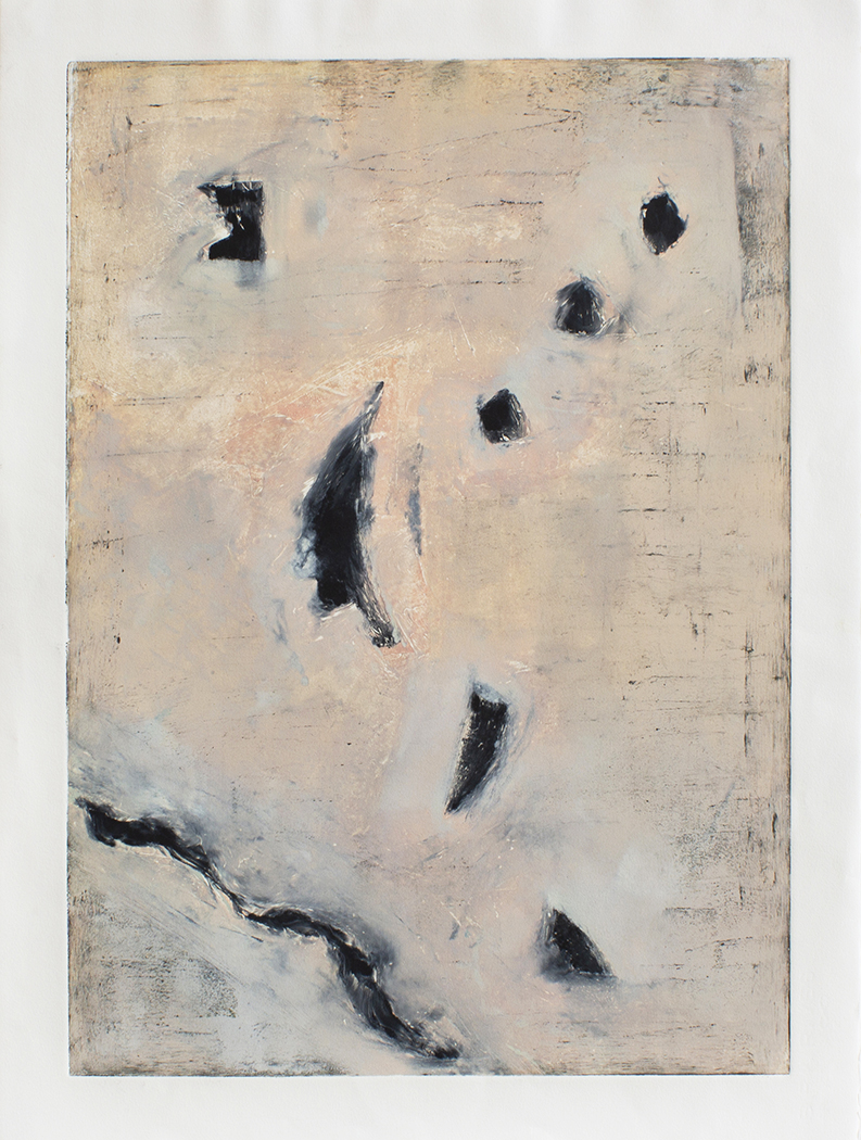 Riverland March 21, 2024 Written by Elena Erickson 30″ x 22″ (76cm x 56cm) – Monotype – Unique Oil Print on Paper – Elena & Mark Erickson